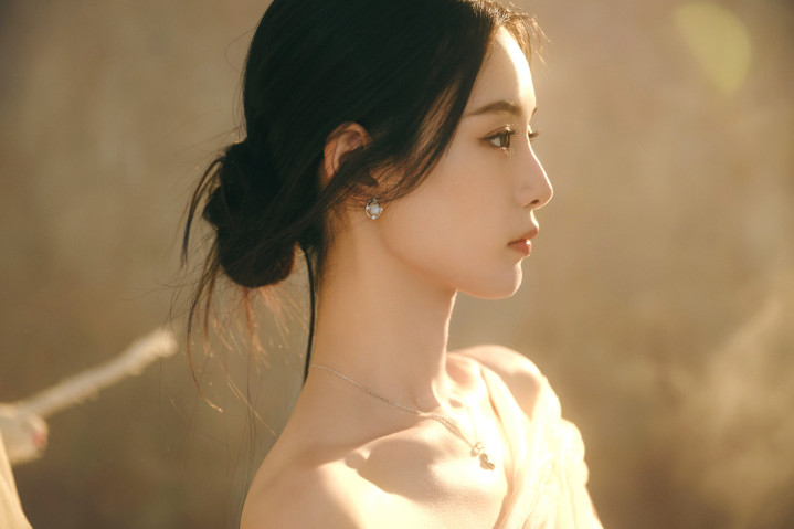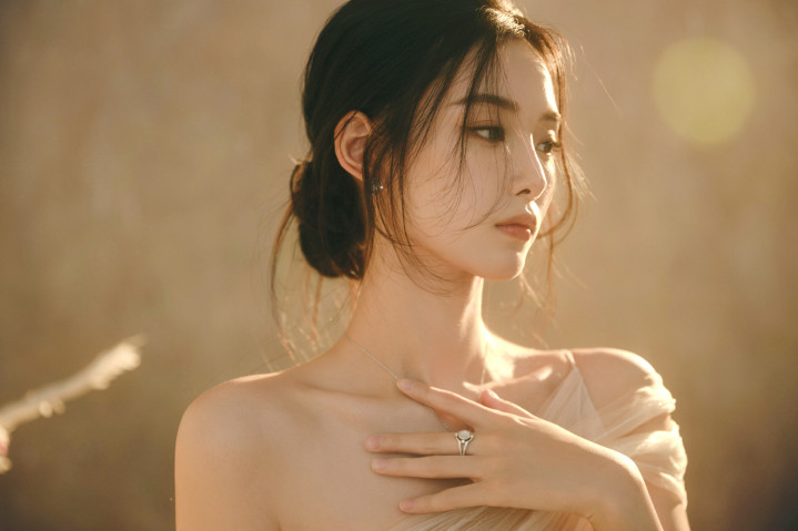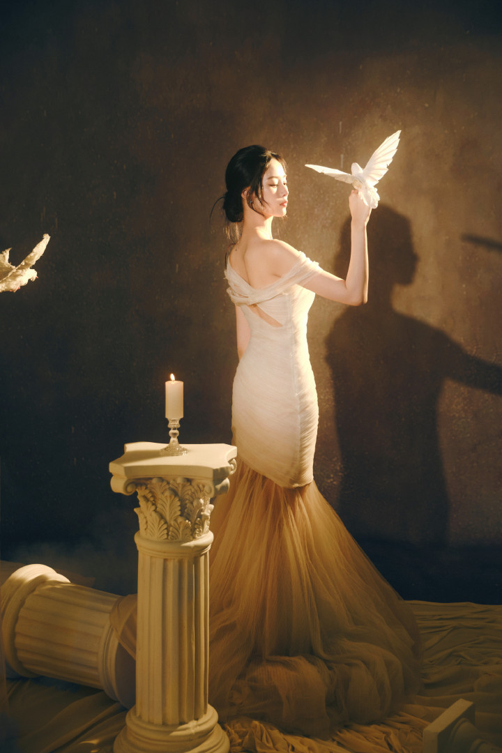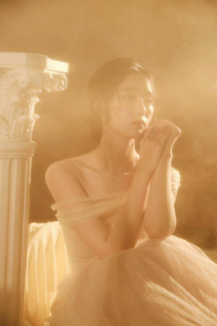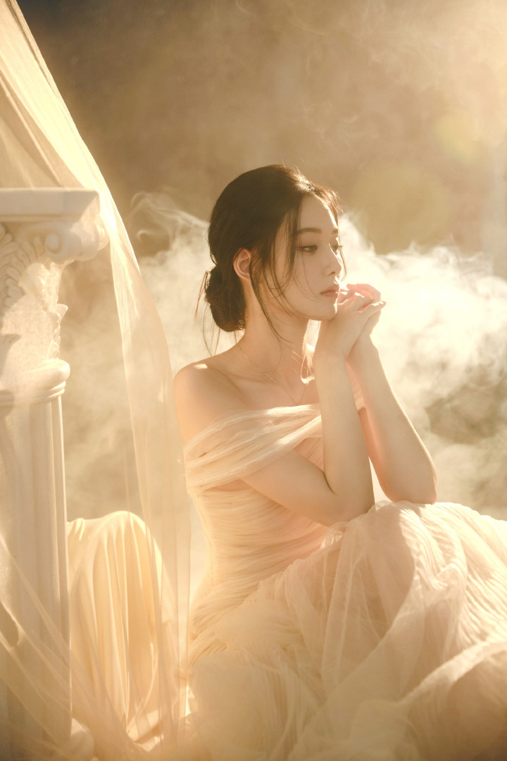 徐艺洋这身米色礼服, 是温柔本身吧? 曲线与光影美绝了